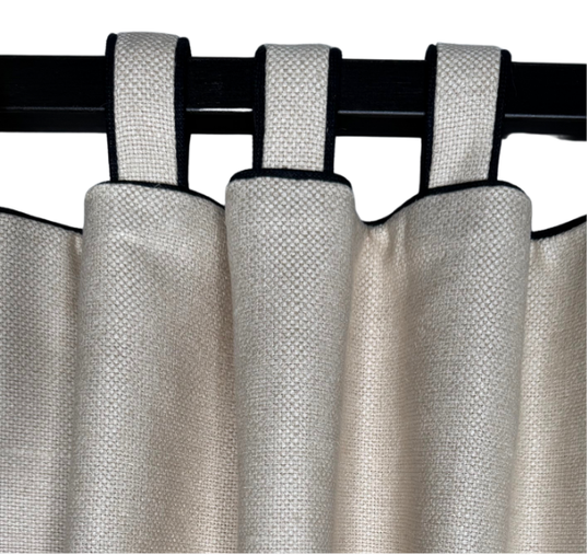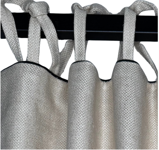This group is made with a flat panel with different ways of attaching the panel to the rod. Since they are flat panels with no controlled pleat, they do not stack neatly. Grommet, tab and tie tops are meant to be stationary panels. Only the ring top here will open and close easily, but it will lack fullness.