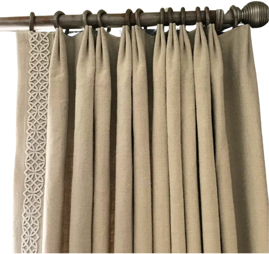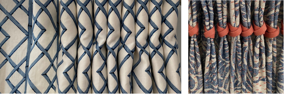 The drapery pleat is a way to control the excess fabric at the top of a drapery so it can attach to the drapery rod hardware. There are many ways to do this, but here are a few of the more popular pleats today! Regional differences in popular pleat styles and names can vary significantly. We have chosen to use the most straightforward descriptions. When placing an order with a workroom, always confirm your workroom’s terminology to ensure the final product matches your vision.