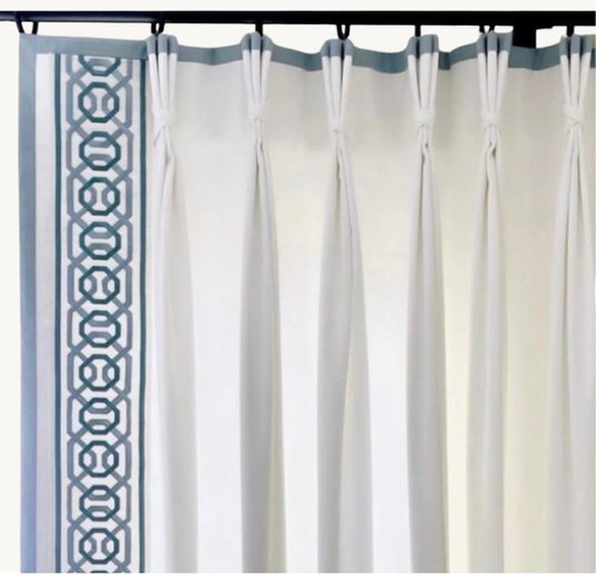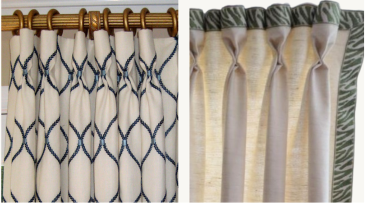 The Tack Top Pleat is also referred to as the Euro Pleat, Parisian Pleat, Tailored Pleat, Fan Pleat or Top Pinch Pleat. Again, the folds are described as fingers, prongs, doubles, or triples.