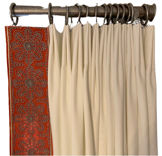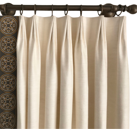 The Ripplebox Pleat shown here is also described as the Inverted Box Pleat. They are the same pleat created with different fabrication methods and pleat spacing. The Inverted Box Peat is to be used as stationary decorative panels as it does not stack well. The Ripplebox Pleat is a great stackable pleat that can be used for draperies that close on any size window.